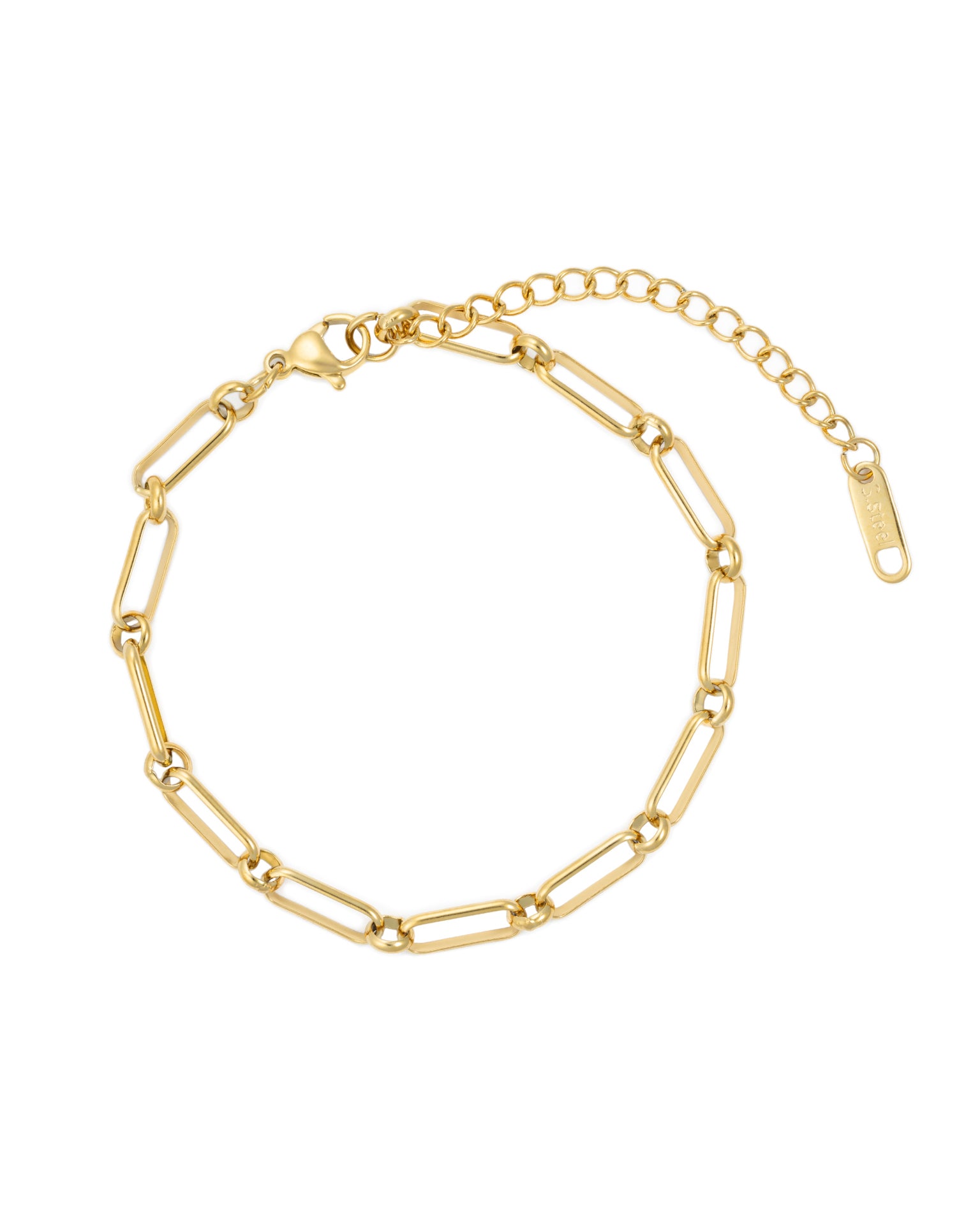 The Paperclip Bracelet is a modern essential, loved for its sleek and minimalist design. Its elongated links create a chic, versatile silhouette that layers beautifully with other bracelets. Crafted from tarnish-free stainless steel, this lightweight piece offers effortless style for everyday wear.